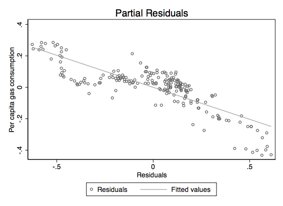 ytitle(Per capita gas consumption) title(Partial Residuals)